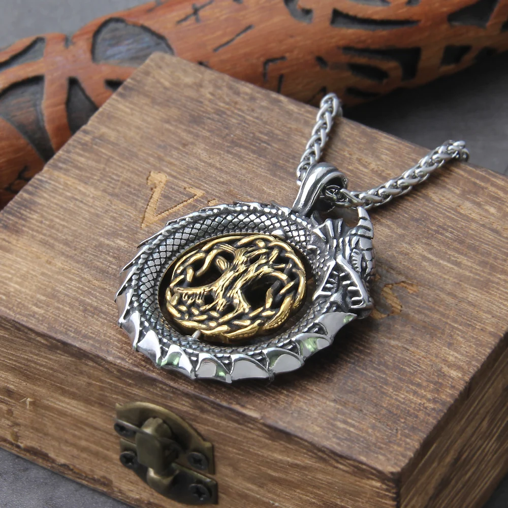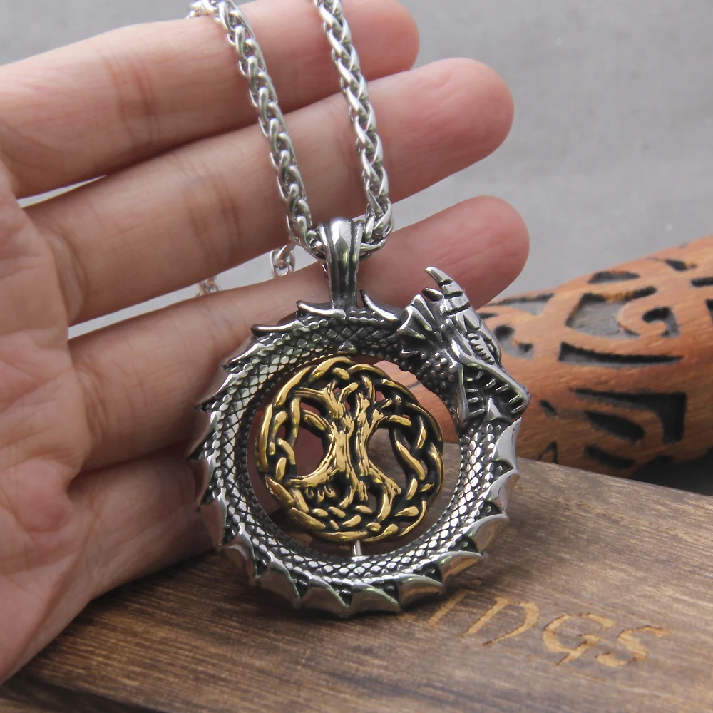 Whether you’re drawn to its spiritual meaning or looking for a unique statement piece, this necklace is a powerful symbol of life’s eternal journey. It is made of semi-heavy stainless steel and is very durable, given that it does not fade over time and keeps its shine and meaning for as long as one is wearing it. Making a statement with the Life Tree Ouroboros Pendant Necklace spells boldness in reminding one of the life connections existing all over the world.