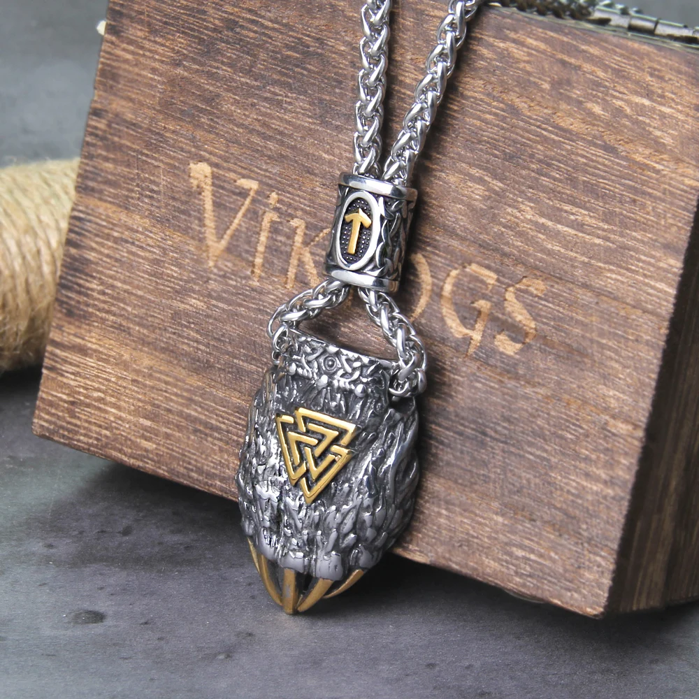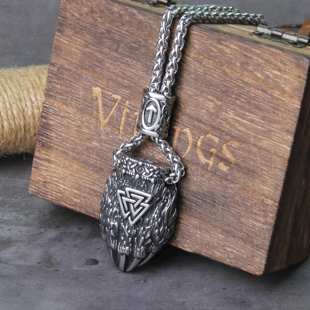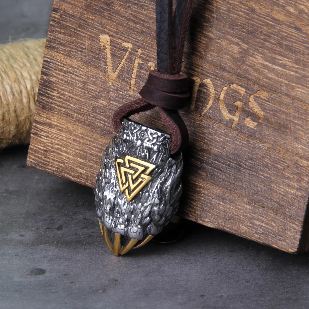 Unleash your inner toughness and bravery, much like the Norse Viking warriors of old, with the Nordic Viking Bear Claw Valknut Necklace. The strong bear claw proudly symbolizes raw power, protection, and surviving in the wild, while the Valknut signifies the path that the warrior would take to reach Valhalla under the watch of Odin. Made of resistant stainless steel, this necklace is more than an accessory; it is an amulet to those who confidently and resiliently walk their own paths.