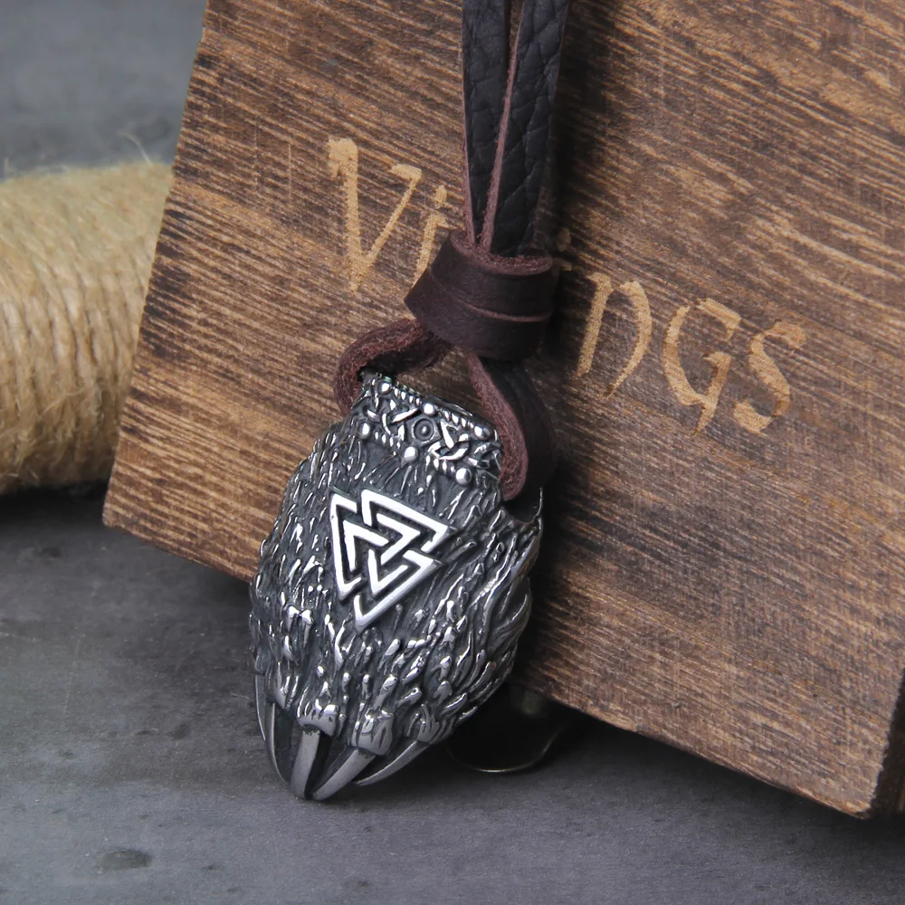 Nordic Viking Bear Claw Valknut Necklace