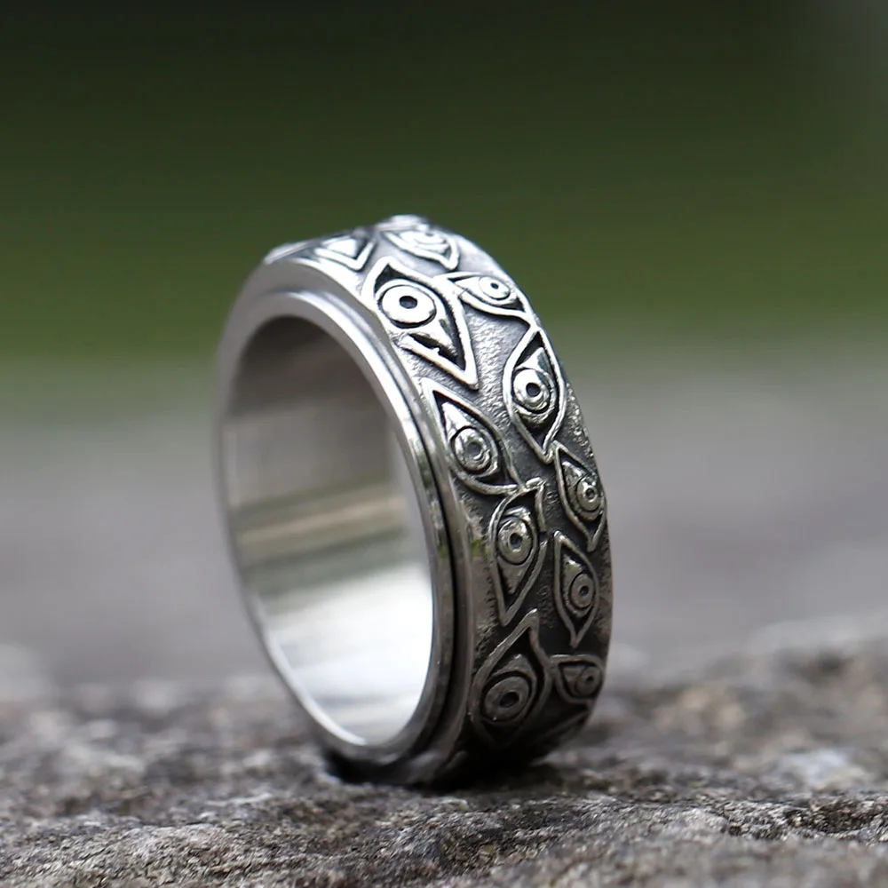 - Design: Features a rotatable outer band with intricate Viking runes, symbolizing protection and guidance.
