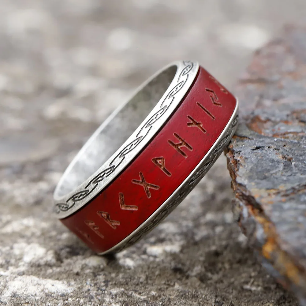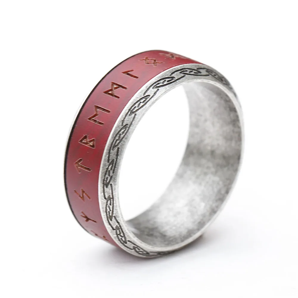 Wearing this ring is more than a fashion statement; it's an embracing of the wisdom and strength that the ancient Norse believed the runes held. Rosewood inlay provides a touch of earthiness, burying the powerful symbols in nature. It can be a perfect companion, whether one is hardly trying to survive the challenges of modern life or seeking to carry Viking culture anywhere. A beautiful piece that speaks to the warrior spirit and the enduring beauty of the natural world.